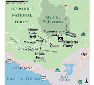 The route to Divide Peak leads through Murietta Canyon, near Ojai, to Murietta